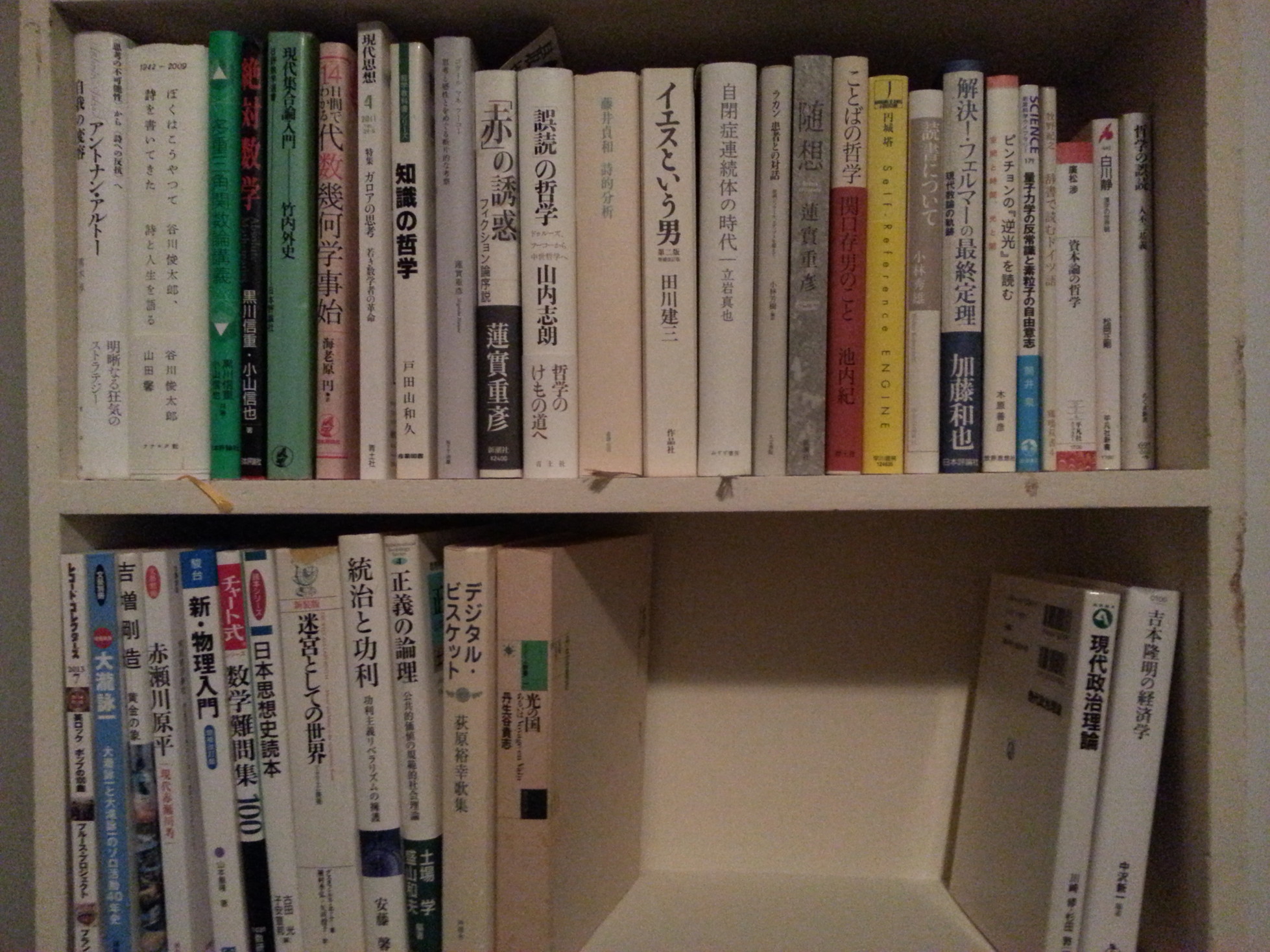 近所のヤードセールで奥さんが買ってきた本棚にあふれた本をとりあえず入れてみたらわれながら「おれっぽいなあ」という本の並びになっていた。